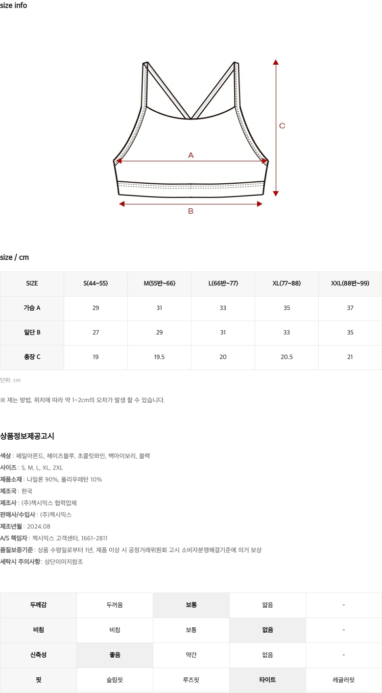 S, M 사이즈 패드탑 : S / M 사이즈 패드 L, XL, XXL, XXXL 사이즈 패드탑 : L / XL 사이즈 패드