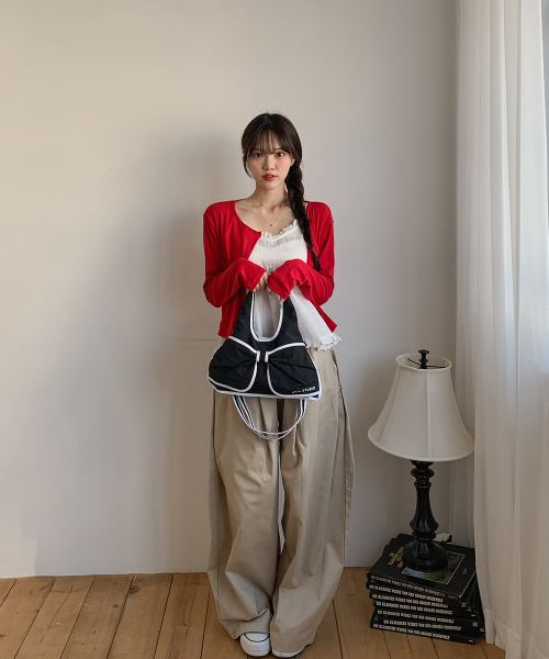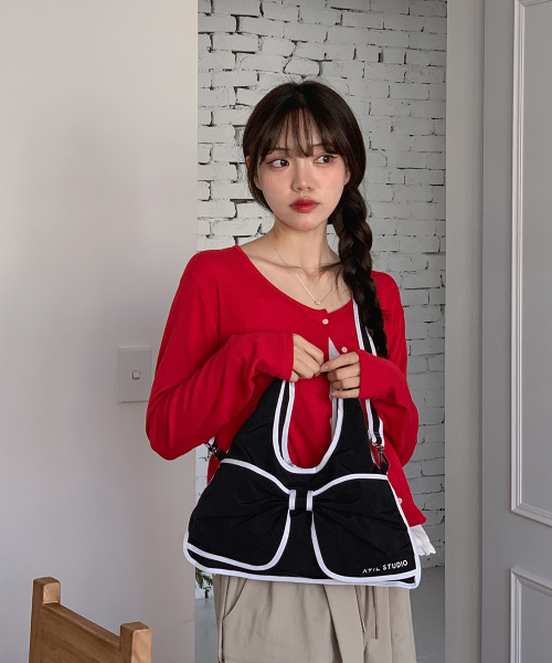 벨루어 스웨이드 미니 듀이 리본 숄더 & 크로스백_[블랙]