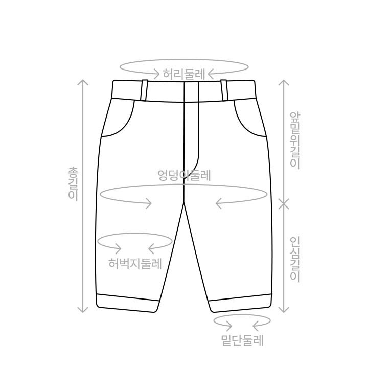 1.허리둘레 : 허리단을 일자로 세팅하여 측정한 둘레