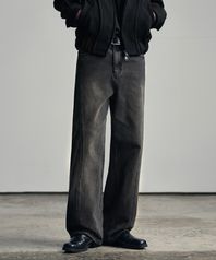 웨이비 커브드 와이드 데님 팬츠 [BLACK]
