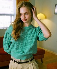 Wave Pom Pom Round Knit (Mint)