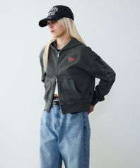 [여성] 피그먼트 크롭 후드 짚업 다크 그레이_HH26109001