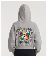 부클 베어 크롭 후드티 (그레이)