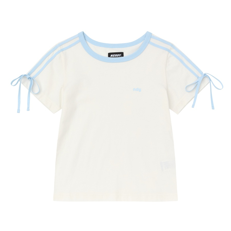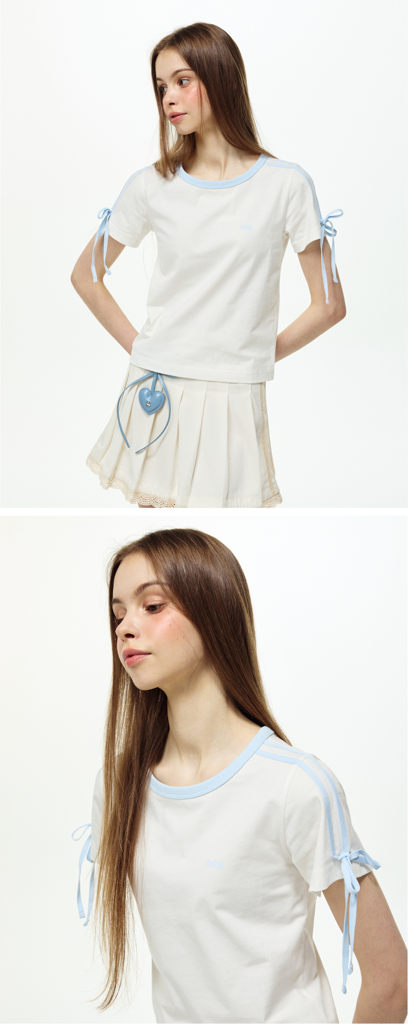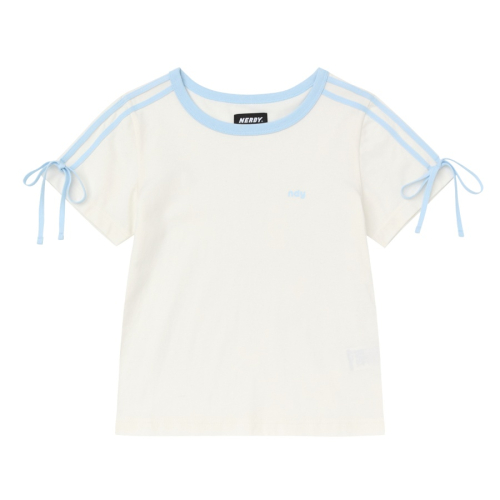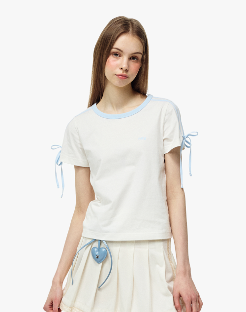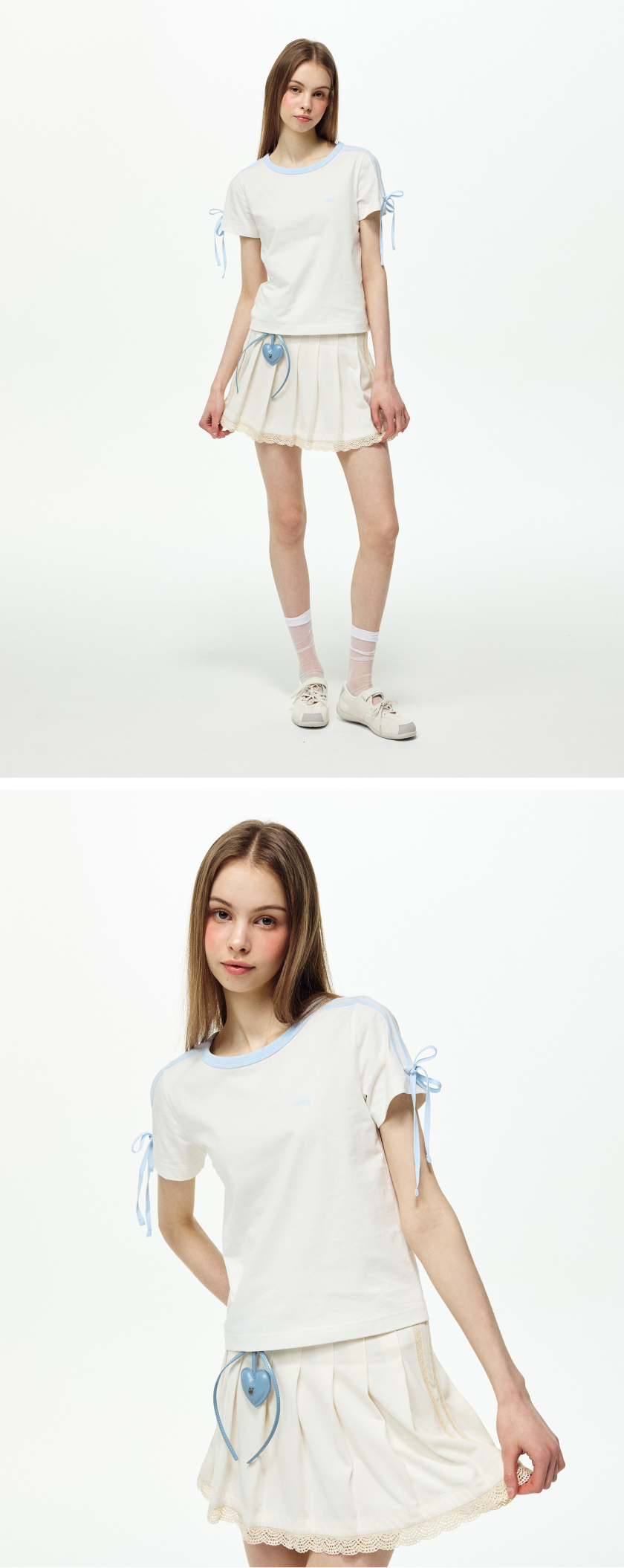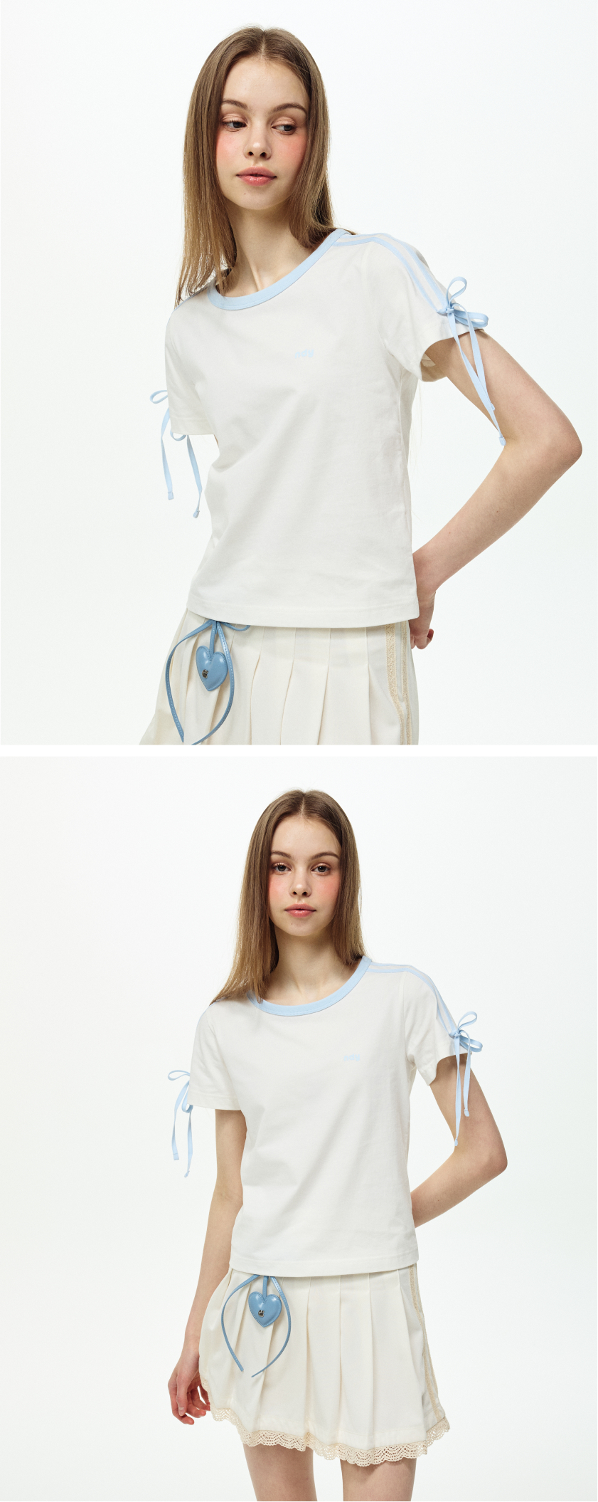 우먼스 스카프 포인트 크롭 반팔 티셔츠 블랙