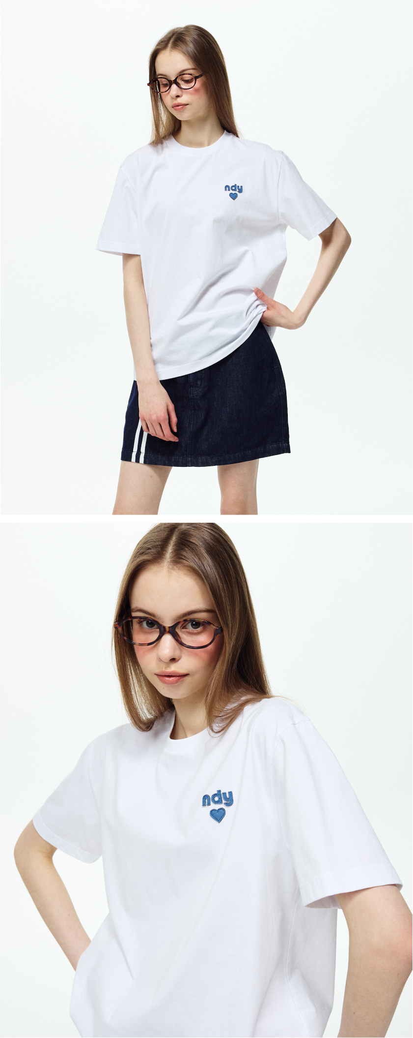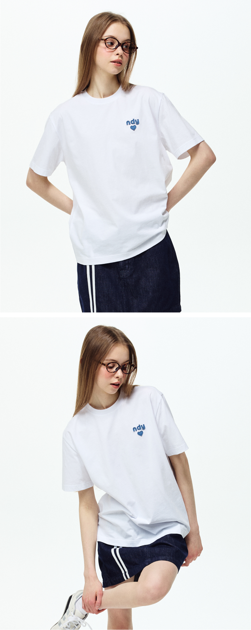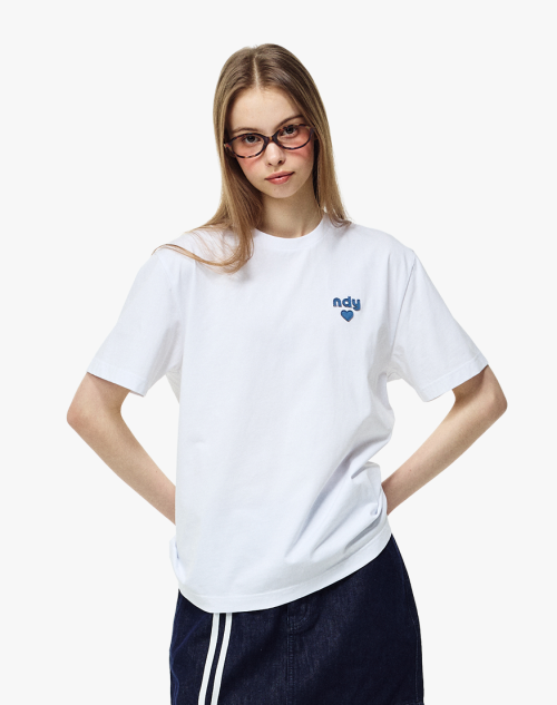 데님 하트 로고 반팔 티셔츠 화이트
