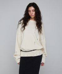 [런웨이] 스프레이 데미지 라운드 니트_그레이
