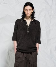 [런웨이] 인디고 헨리넥 반팔 니트_차콜