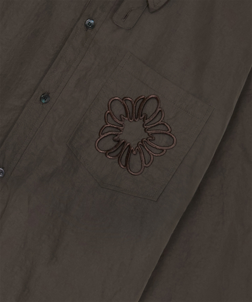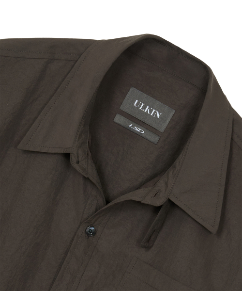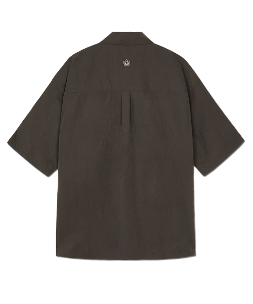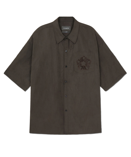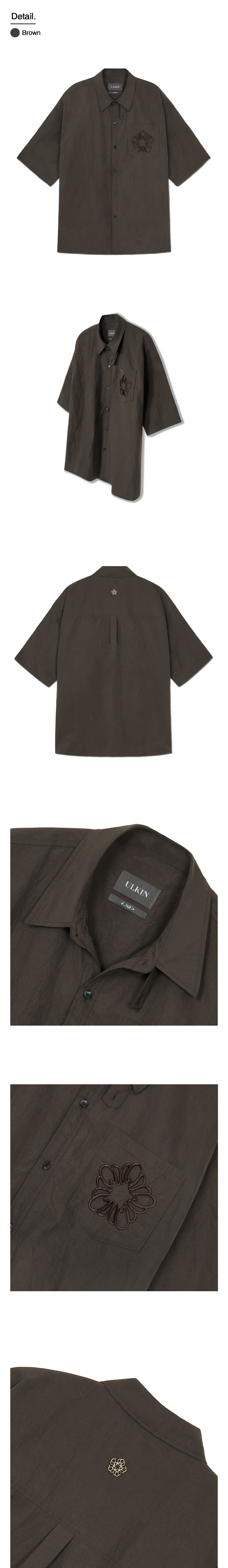 [런웨이] 전통염색 감, 먹 무궁 크로셰 반팔 셔츠_브라운