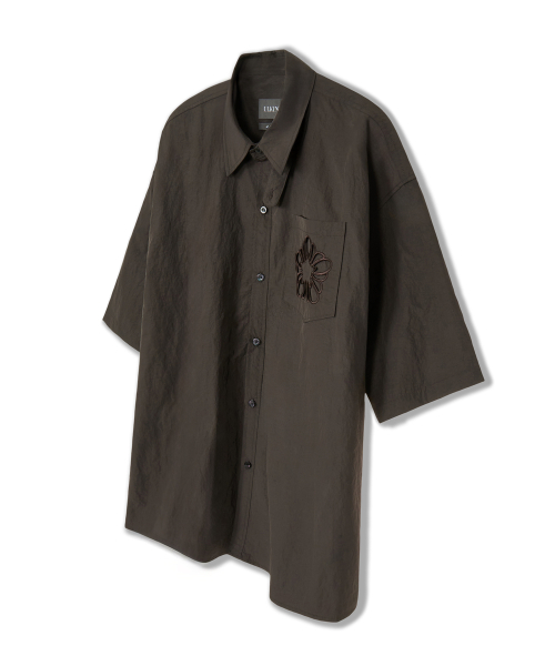 [런웨이] 무궁 크로셰 하프 셔츠_차콜
