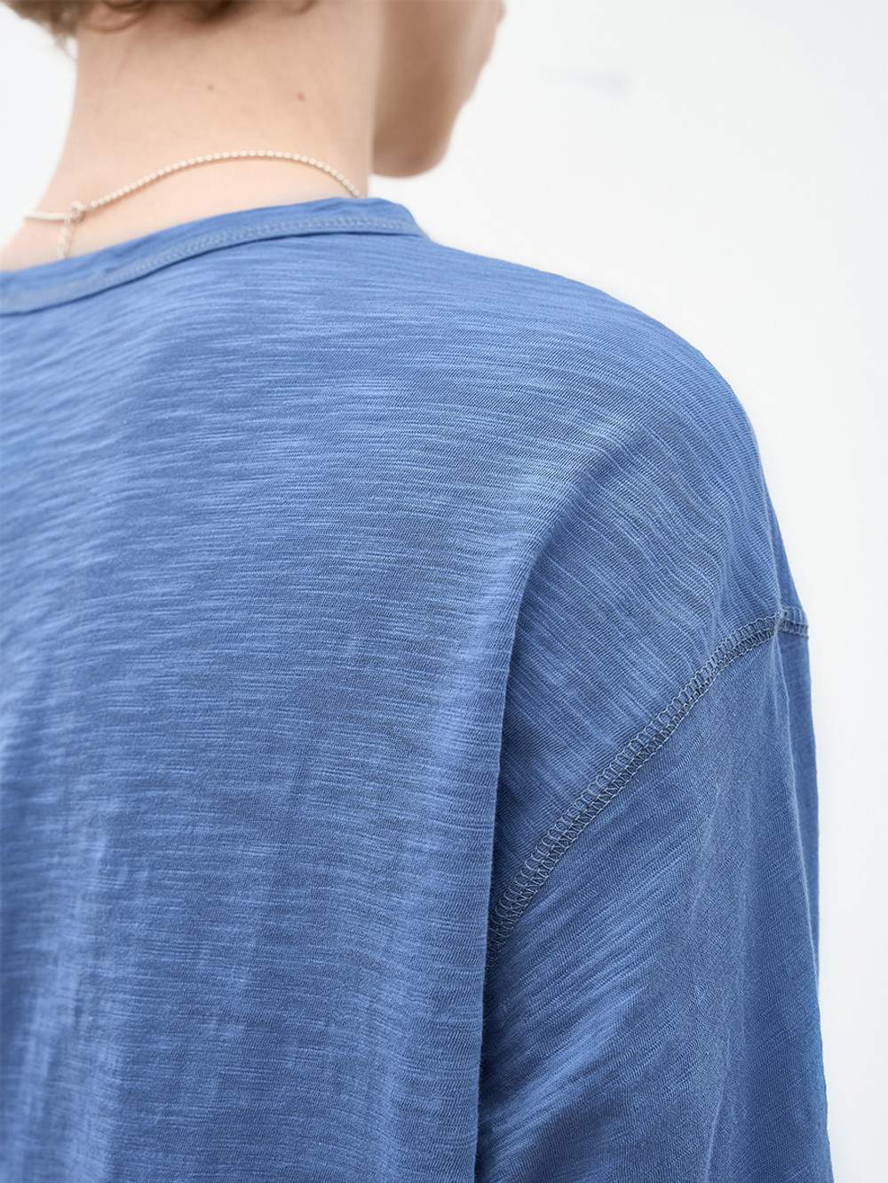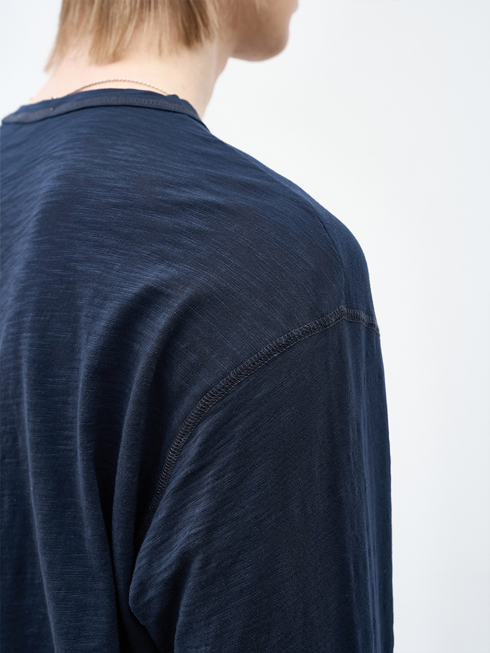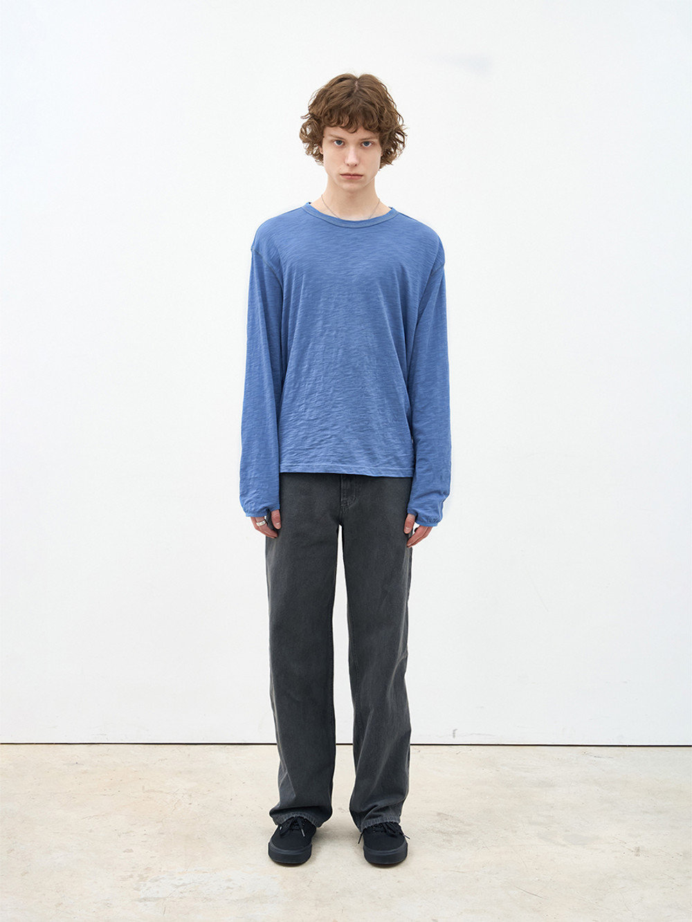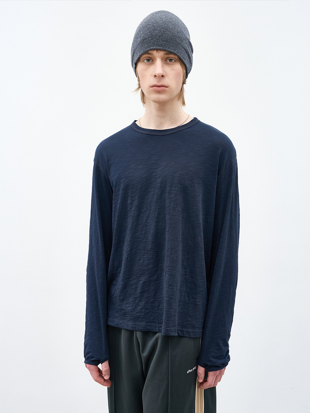 애프터프레이의 아카이브 피스를 재해석한 텍스처드 슬럽 롱 슬리브. 덤블 워싱과 엔자임 가공의 정교한 공정을 거쳐 탄생한 슬럽 코튼 소재의 입체적인 텍스처와 계절에 구애받지 않는 쾌적한 두께감. 콘트라스트 스티치와 핑거홀 파이핑 디테일로 완성한 절제된 조형미를 투영하며, 피부에 부드럽게 감기는 편안한 착용감과 섬세한 마감이 공존하는 감각적인 데일리 피스.