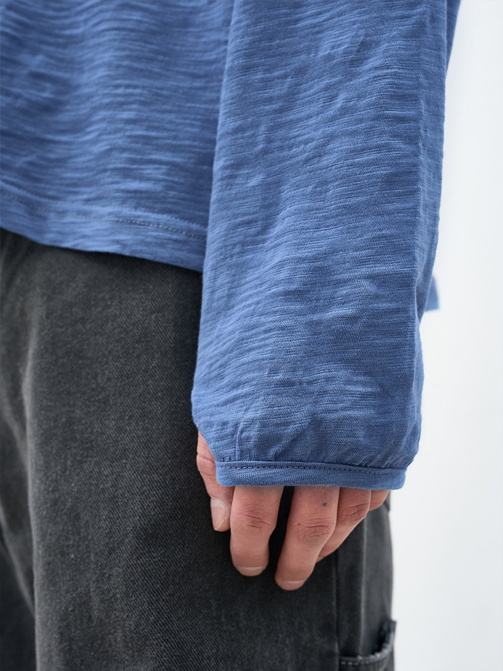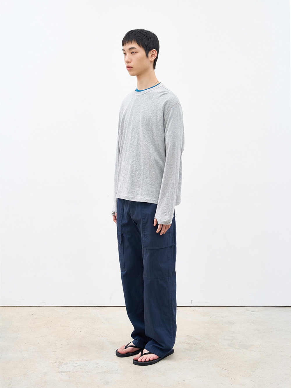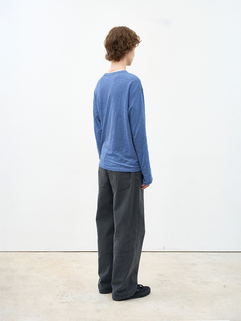 애프터프레이의 아카이브 피스를 재해석한 텍스처드 슬럽 롱 슬리브. 덤블 워싱과 엔자임 가공의 정교한 공정을 거쳐 탄생한 슬럽 코튼 소재의 입체적인 텍스처와 계절에 구애받지 않는 쾌적한 두께감. 콘트라스트 스티치와 핑거홀 파이핑 디테일로 완성한 절제된 조형미를 투영하며, 피부에 부드럽게 감기는 편안한 착용감과 섬세한 마감이 공존하는 감각적인 데일리 피스.