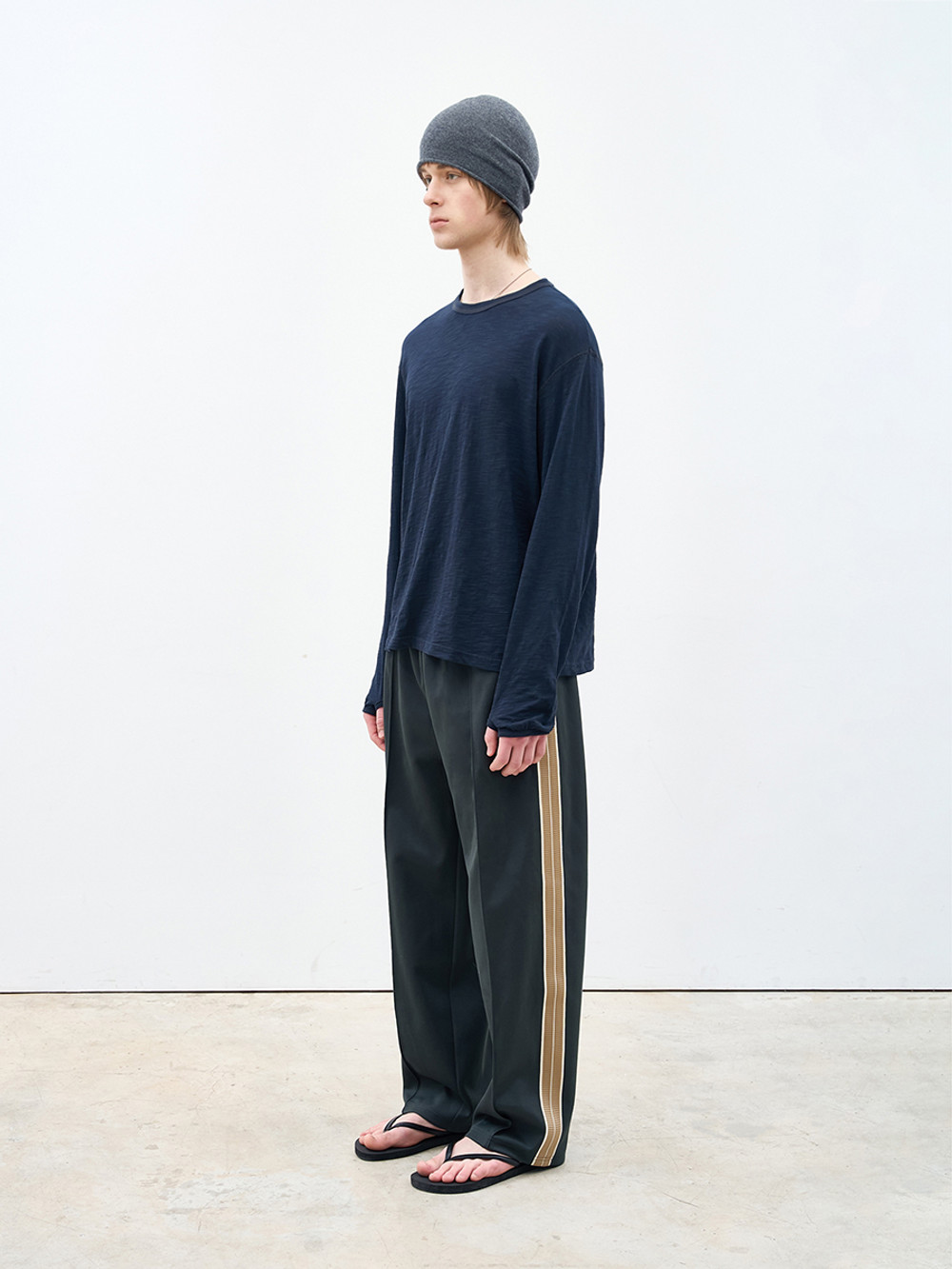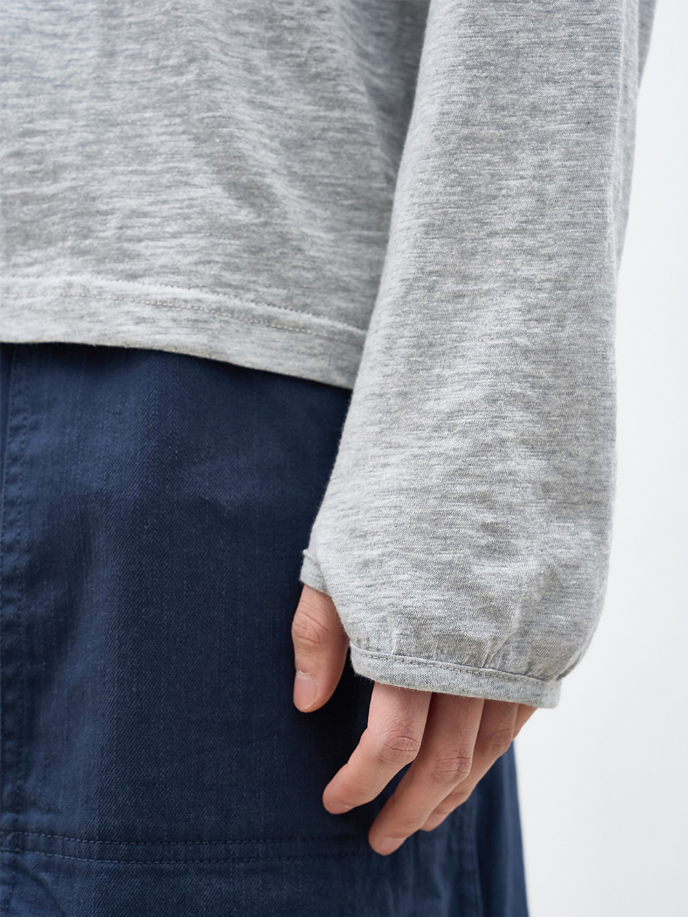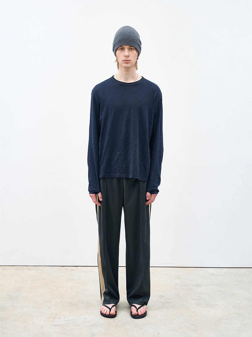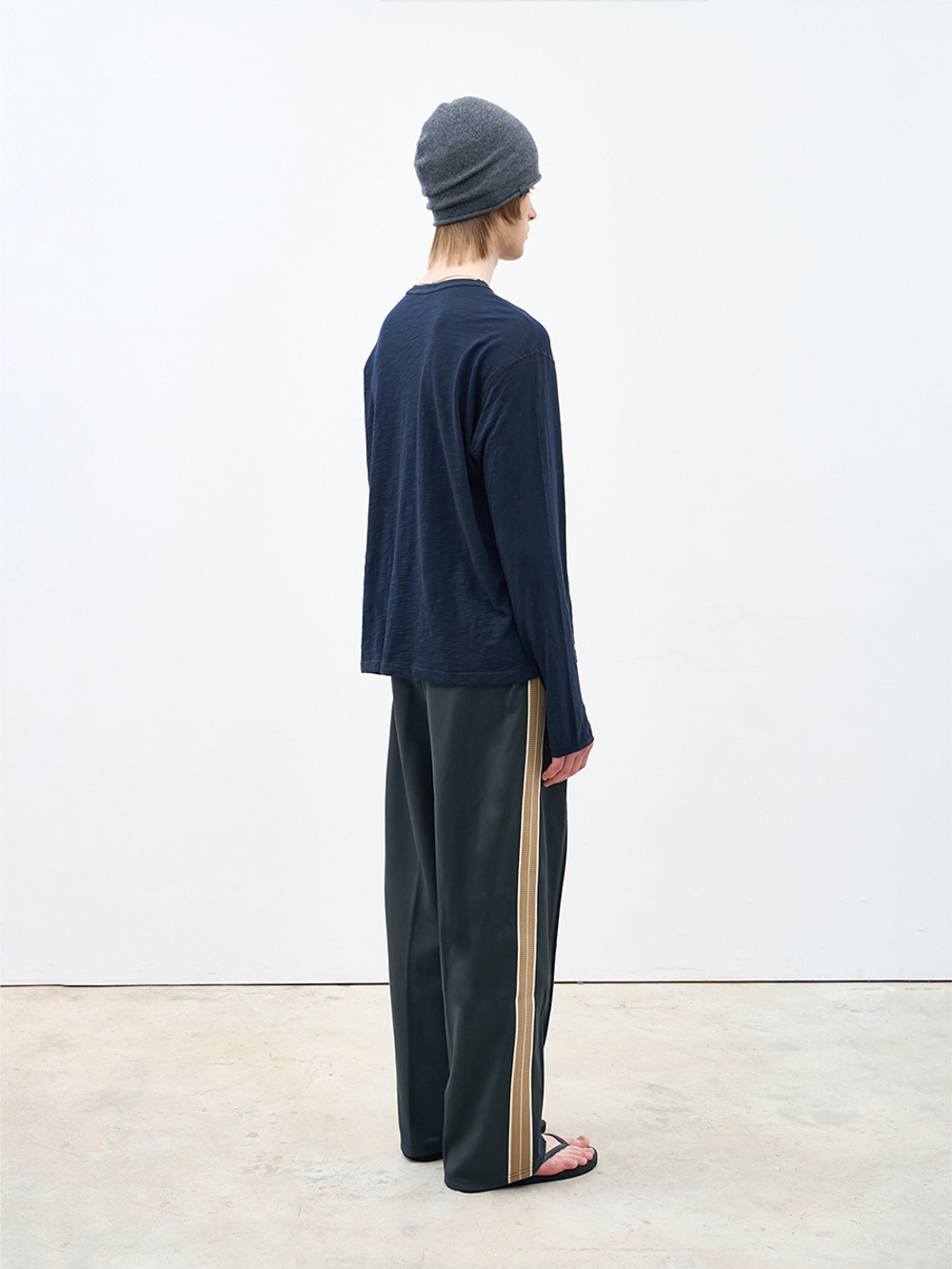 애프터프레이의 아카이브 피스를 재해석한 텍스처드 슬럽 롱 슬리브. 덤블 워싱과 엔자임 가공의 정교한 공정을 거쳐 탄생한 슬럽 코튼 소재의 입체적인 텍스처와 계절에 구애받지 않는 쾌적한 두께감. 콘트라스트 스티치와 핑거홀 파이핑 디테일로 완성한 절제된 조형미를 투영하며, 피부에 부드럽게 감기는 편안한 착용감과 섬세한 마감이 공존하는 감각적인 데일리 피스.