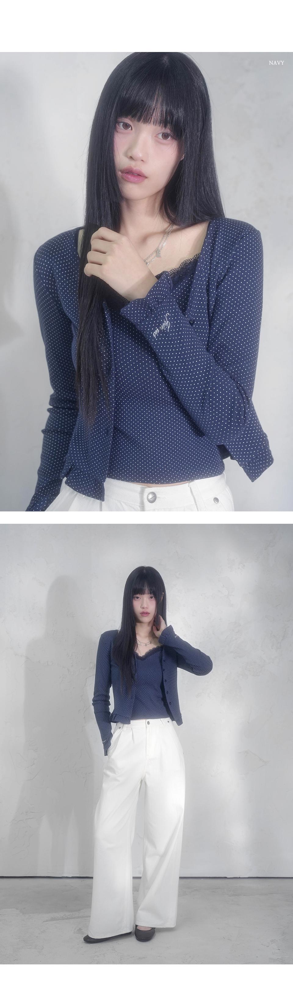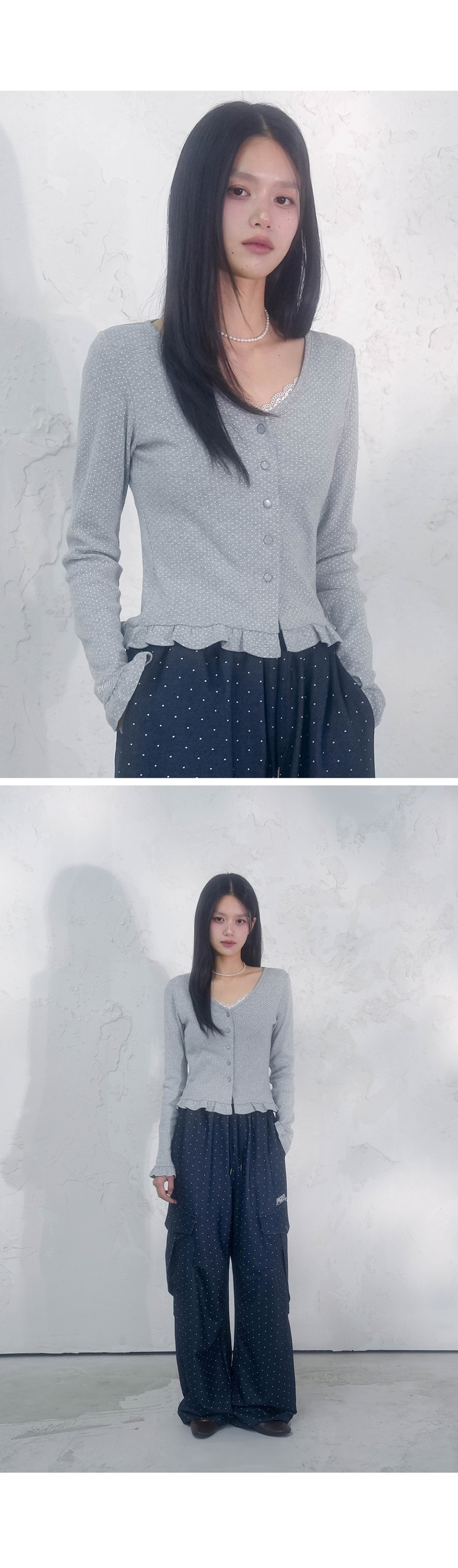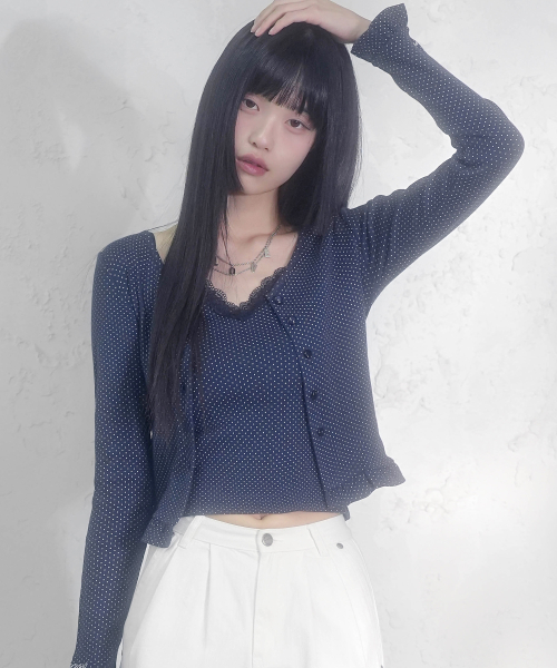 엘리나 로맨틱 도트 가디건 세트_4Colors