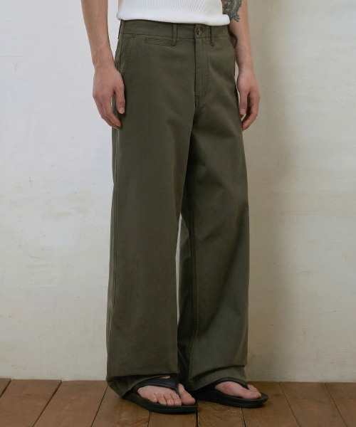 파인 워시드 스트레이트 치노 팬츠 (카키)