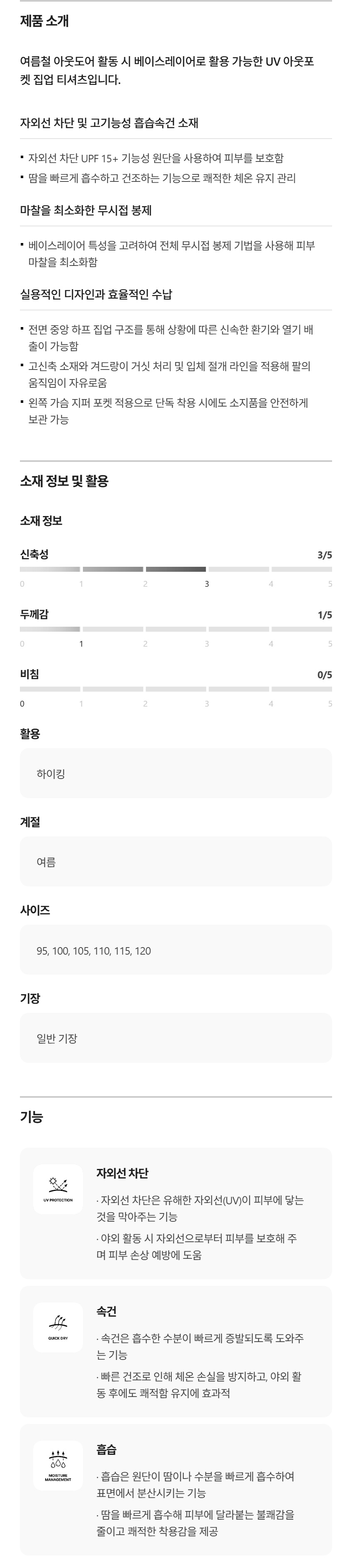 남성 솔라이트 UV 아웃포켓 집업 긴팔 티셔츠 JWTBM26291BLK