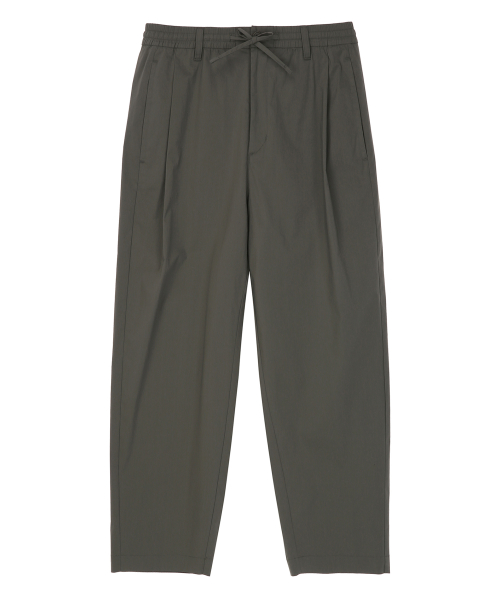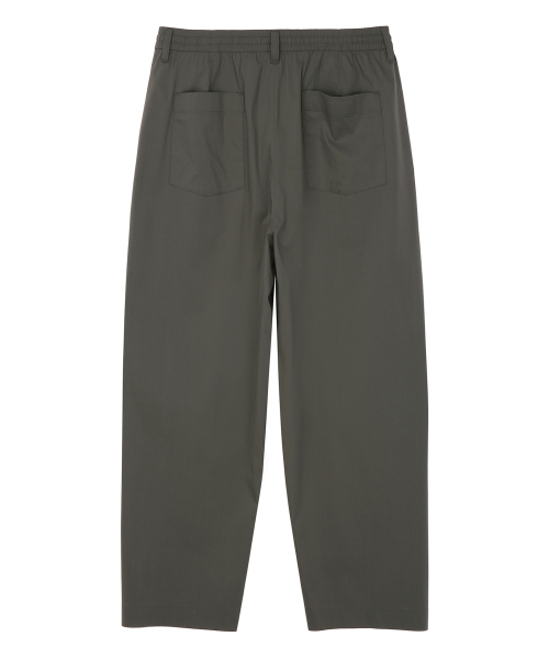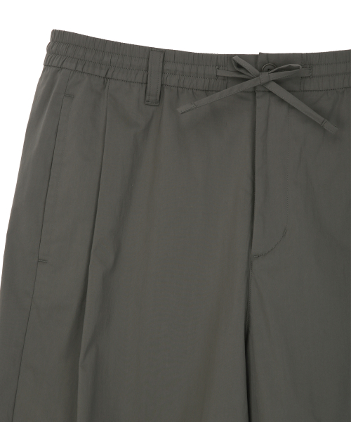 크링클 원 턱 와이드 밴딩 팬츠 [카키 그레이]