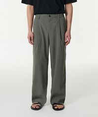 원 턱 매직 와이드 팬츠 그레이쉬 카키