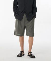 린넨 라이크 원 턱 와이드 밴딩 쇼츠 [카키 그레이]