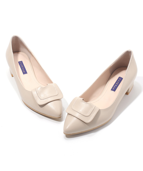 스퀘어 버클 포인트 포인티드 토 미들 힐 펌프스 K56P418