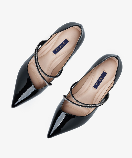 크리스탈 더블 스트랩 에나멜 펌프스 K56P012