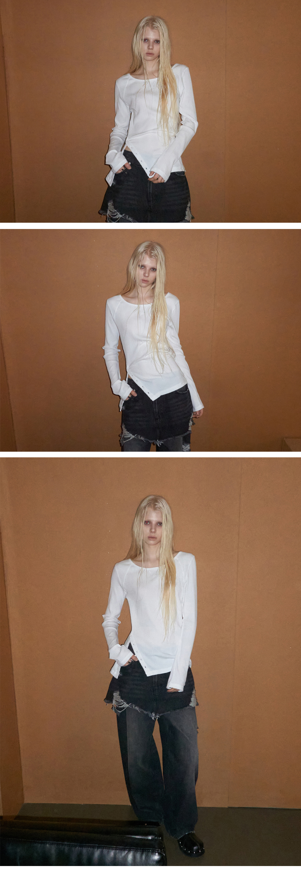 Diagonal Button Tee White