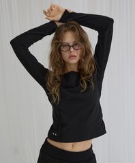 Cut-Out Boat Neck Long Sleeve Tee Black
