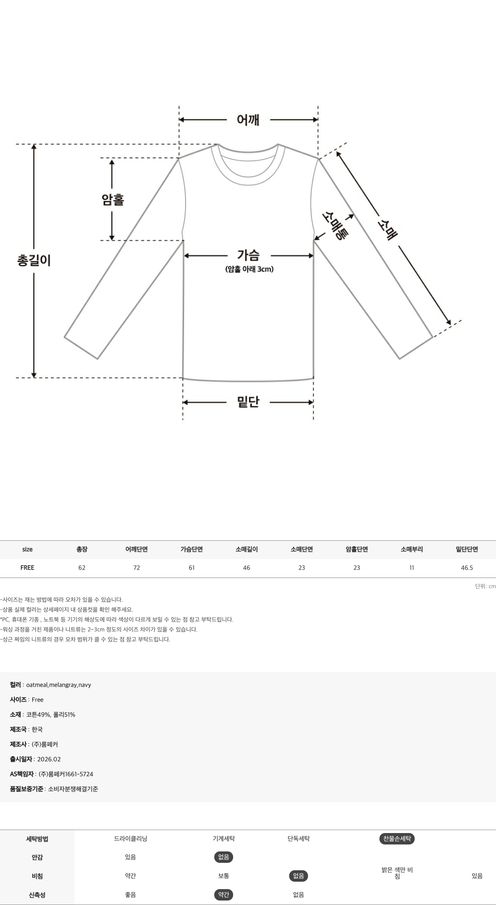 - 코튼49%, 폴리51%