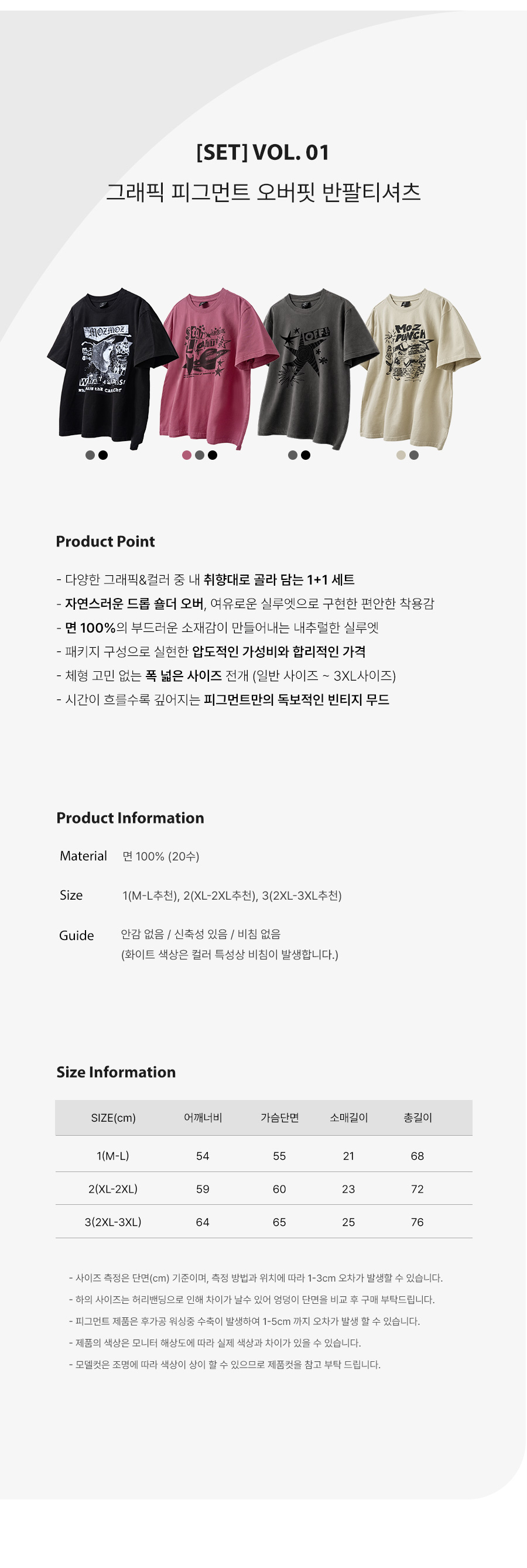 [SET] 그래픽 피그먼트 오버핏 반팔티셔츠 VOL.01