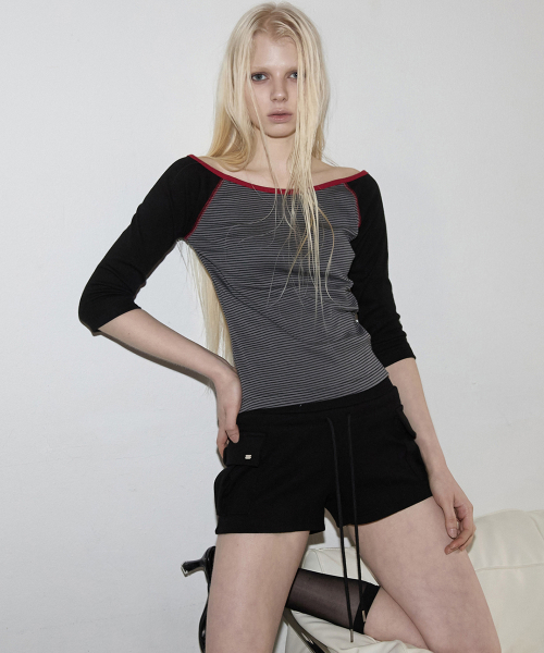 Napoleon Diagonal zipper short pants (Dark gray)