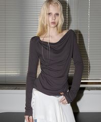 Side Shirring Draped Tee Charcoal