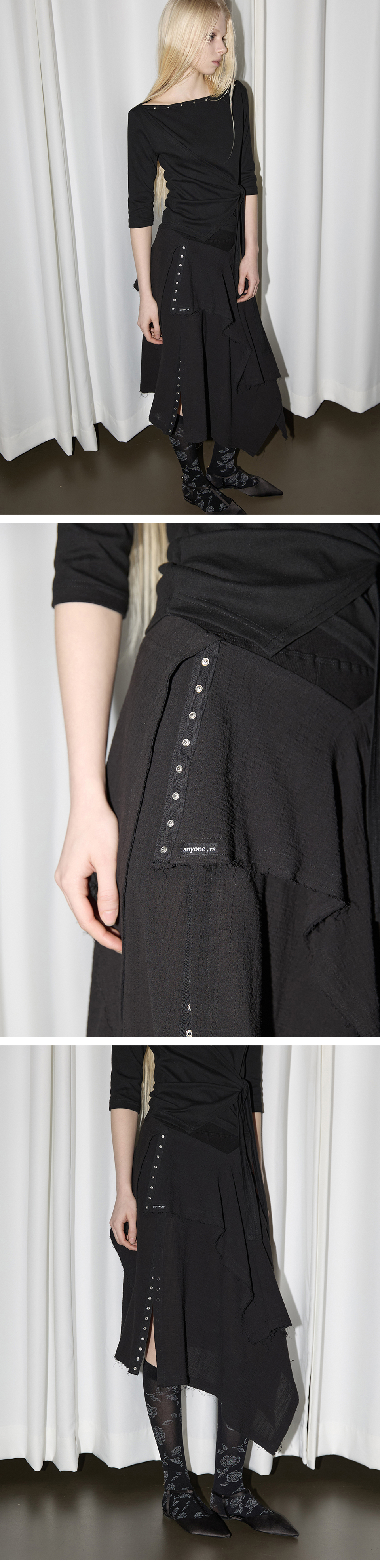 Snap Layered Skirt Black