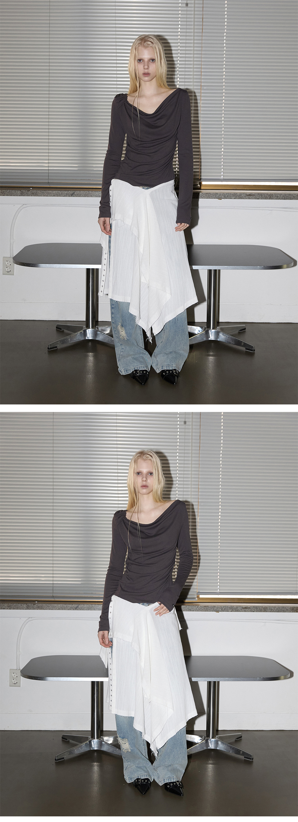 W. Radio Lettering Slim Fit Long Sleeve [IVORY]_SEWTS001IVORY