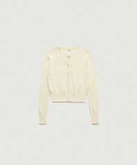 Cotton Eyelet Knit Cardigan Ensemble With Sleeveless Top_Light Yellow