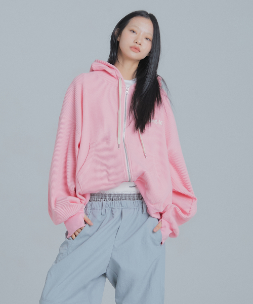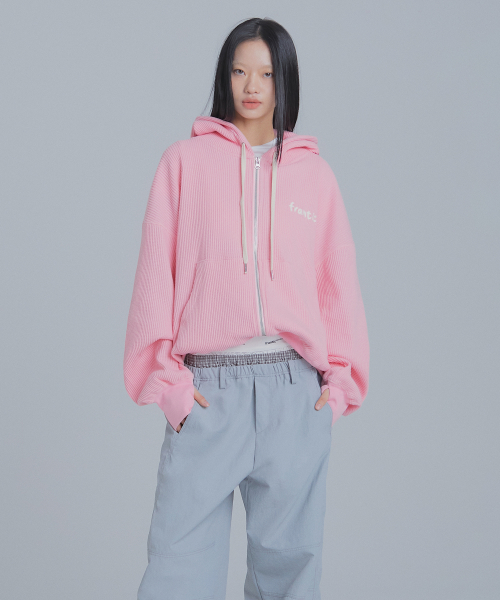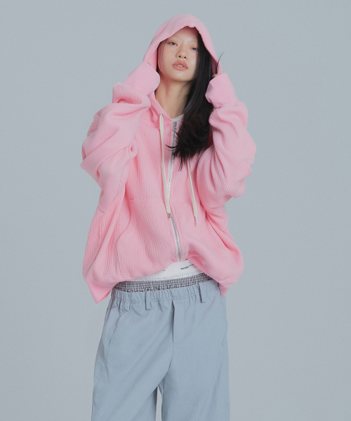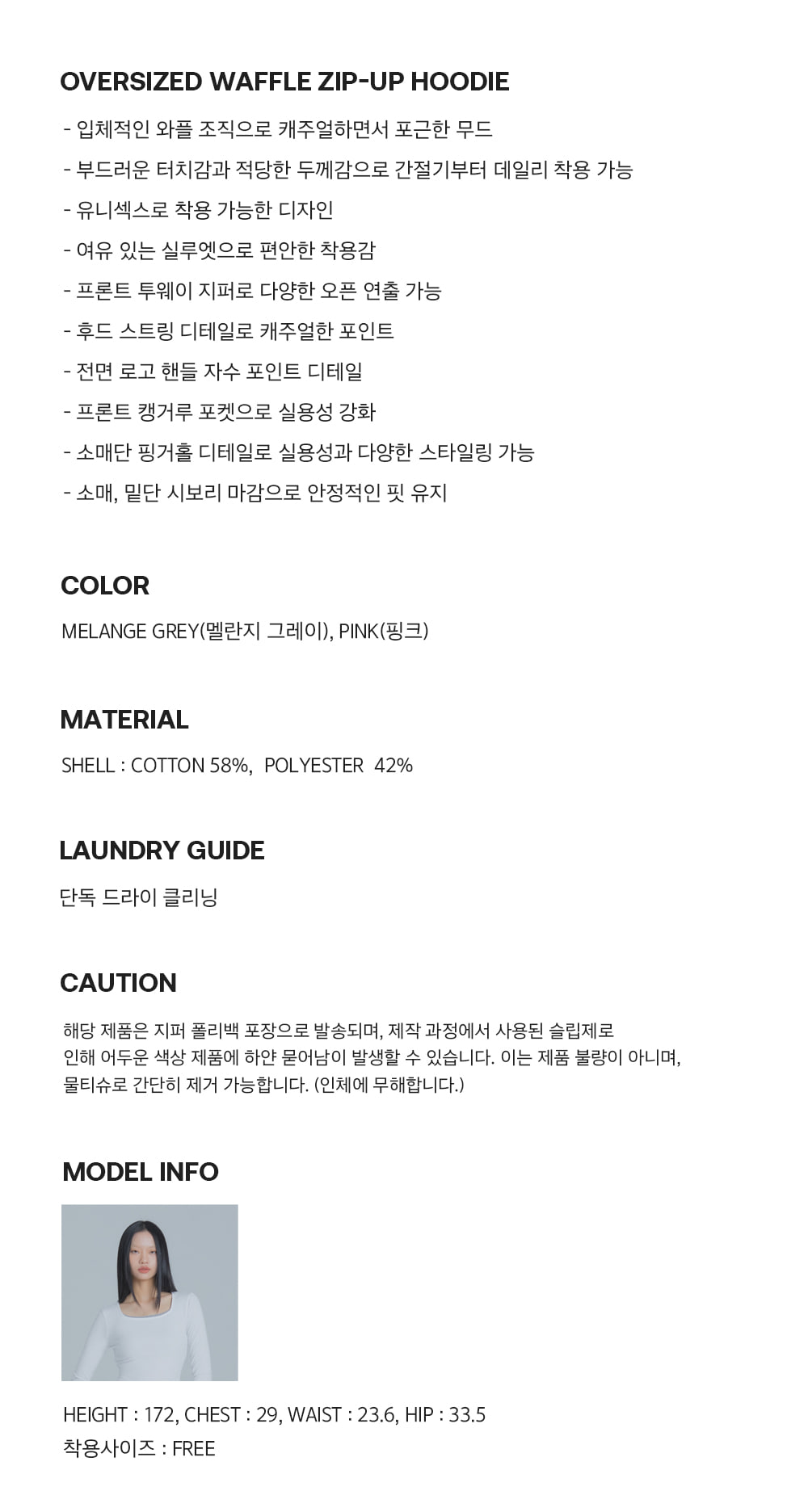 오버사이즈 와플 후드집업 - 멜란지그레이