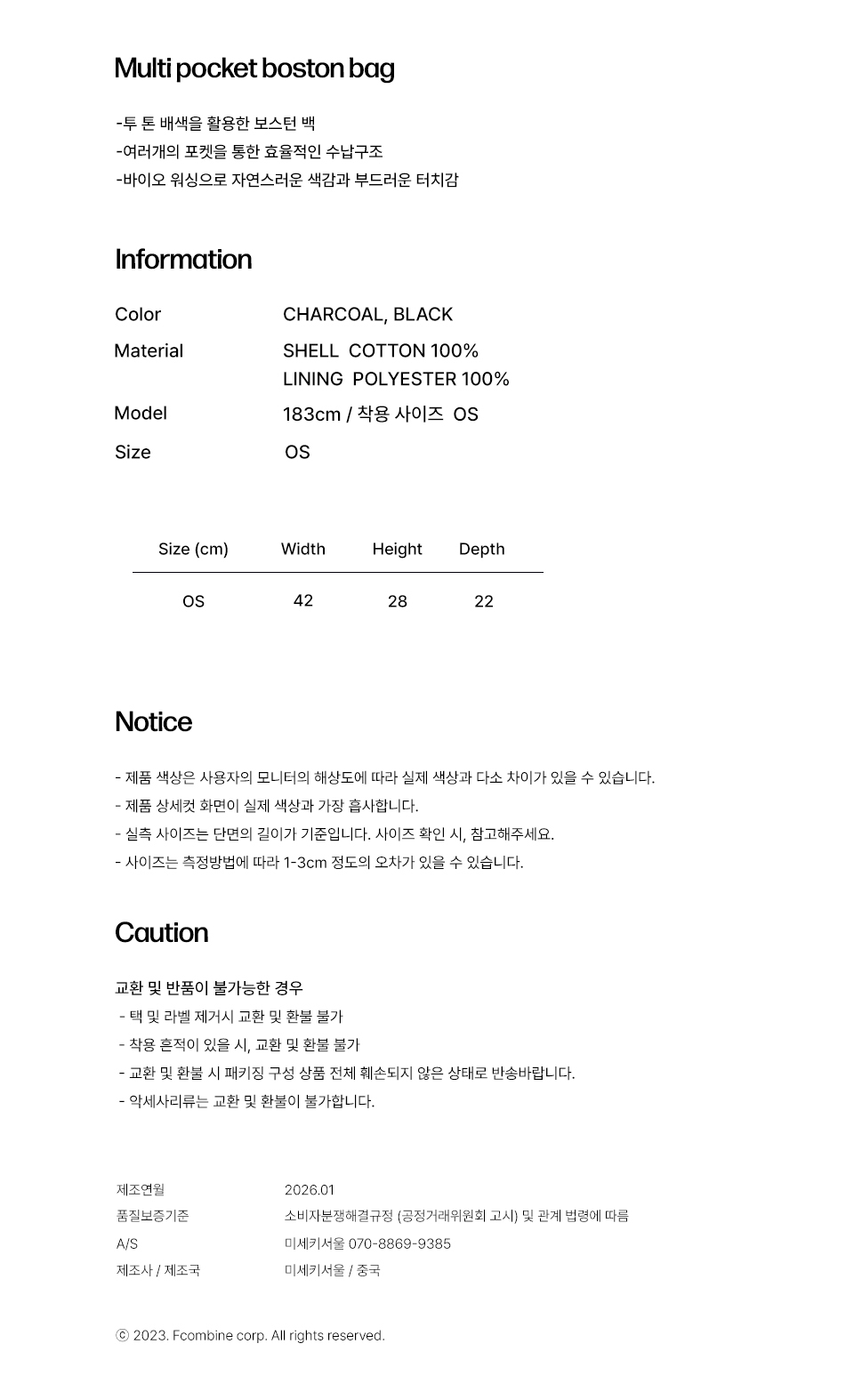 [미세키서울 맨X리제임스] Multi pocket boston bag BLACK