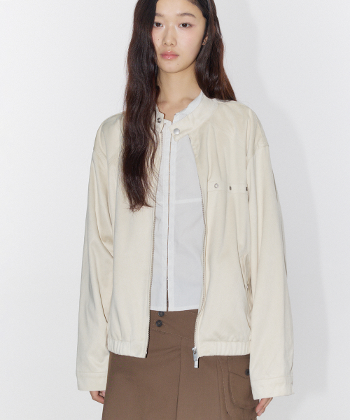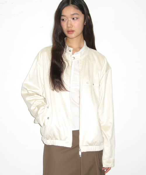 아일렛 포인트 스웨이드 비조 인시전 바이커 오버핏 블루종 자켓 [아이보리]