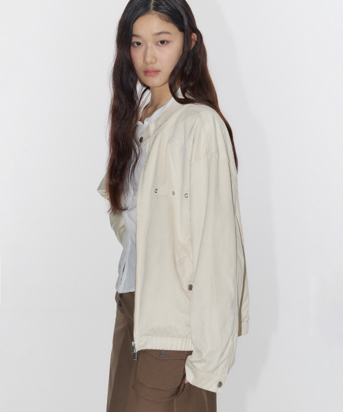 오버사이즈 유틸리티 코튼 블루종 집업 자켓 [화이트]