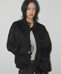 아일렛 포인트 스웨이드 비조 인시전 바이커 오버핏 블루종 자켓 [블랙]