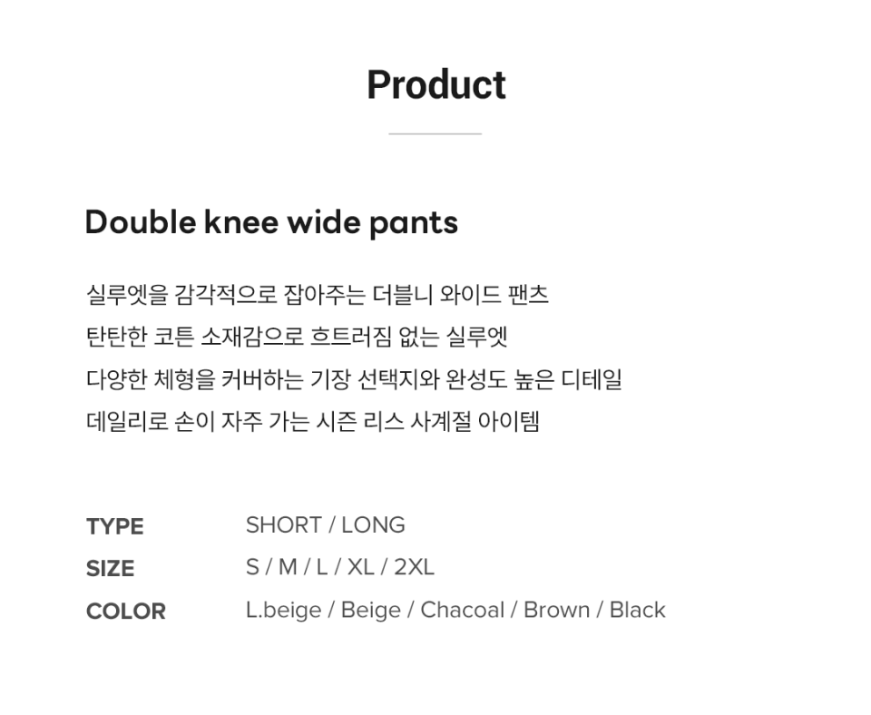 더블니 와이드 코튼 팬츠 - (5컬러)