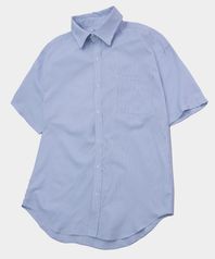 썸머 베이직 스트라이프 원포켓 오버핏 코튼 반팔 셔츠 [블루]
