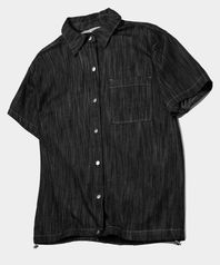 언더 스트링 원포켓 버튼 워싱 생지 데님 워크 오버핏 반팔 셔츠 [흑청]