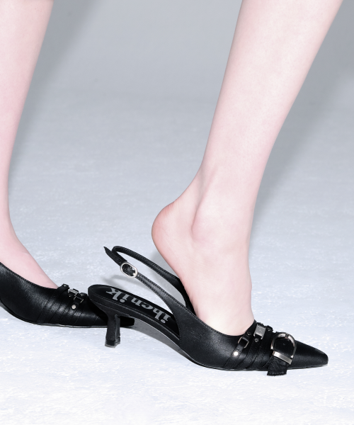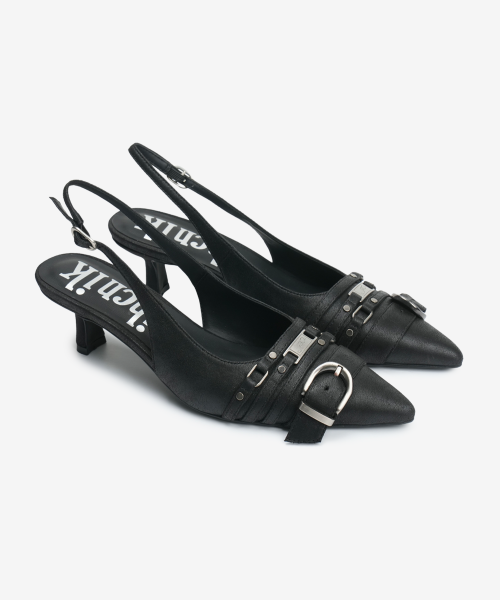 BUCKLE STRAP SLINGBACKS IN BLACK