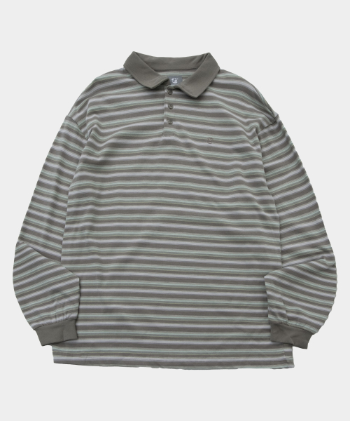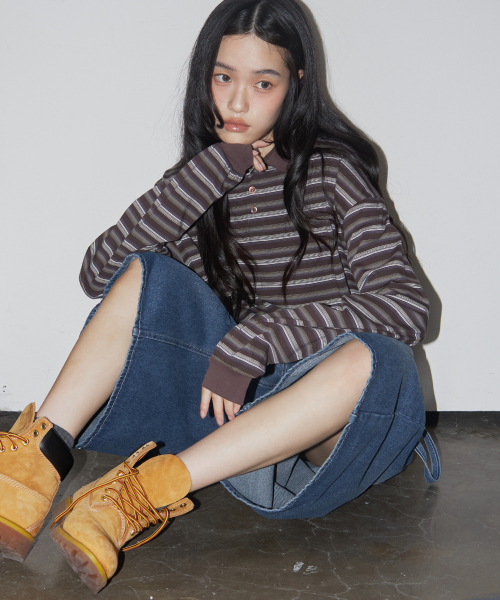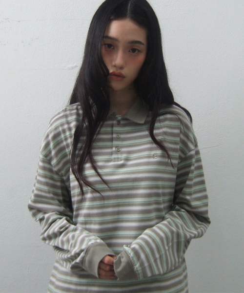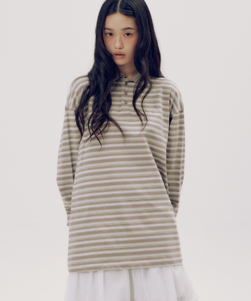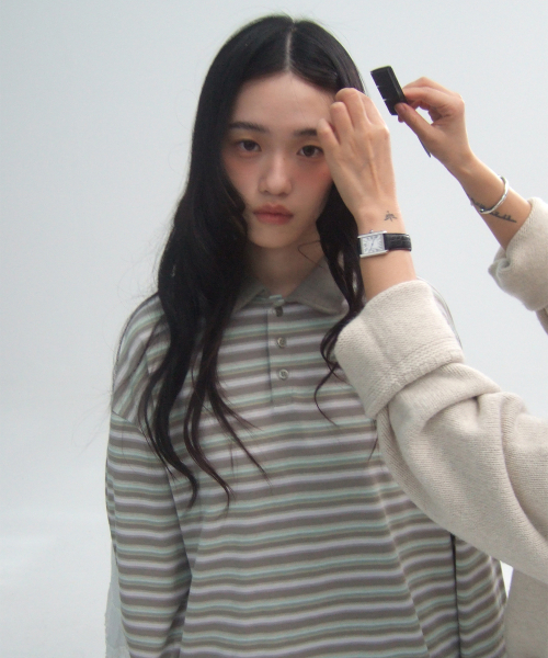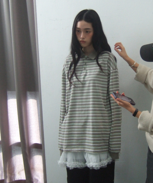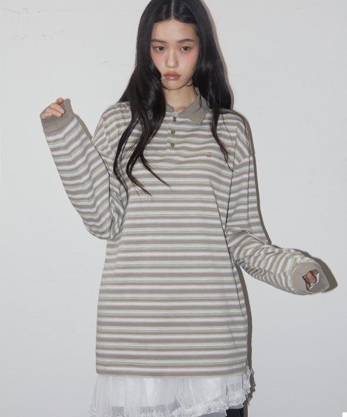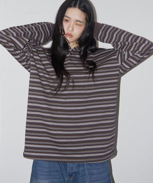 단가라 멀티 스트라이프 오버핏 롱슬리브 카라 티셔츠 _2COLOR