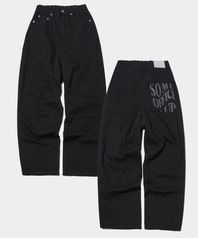레터링 프린티드 베이직 벌룬핏 와이드 코튼 팬츠[블랙]