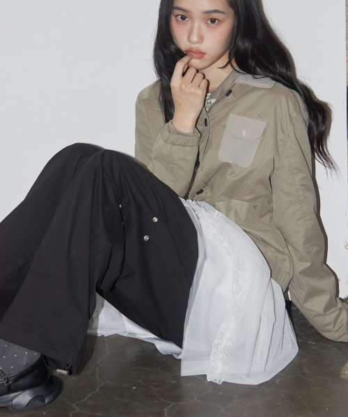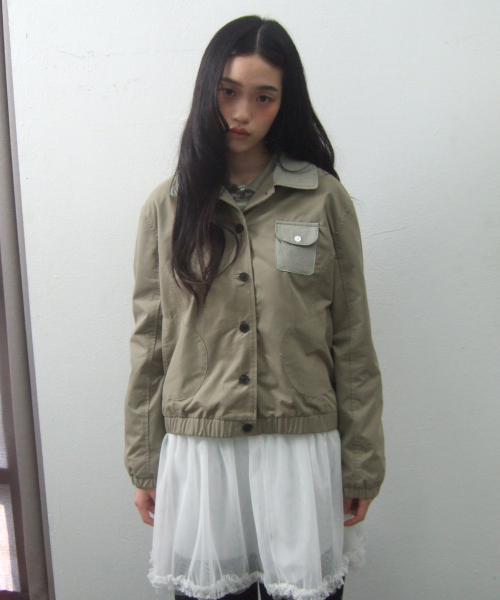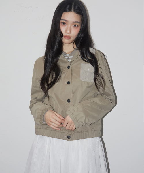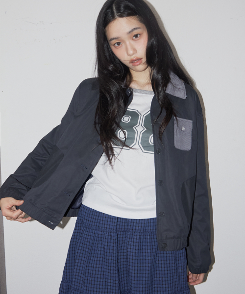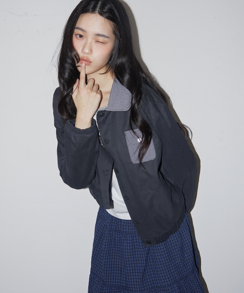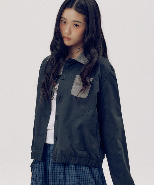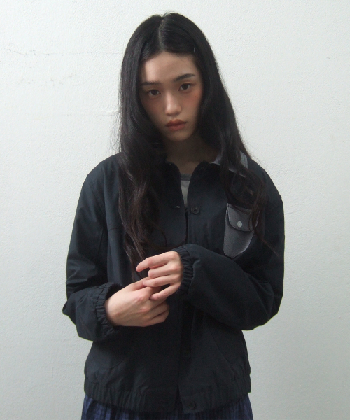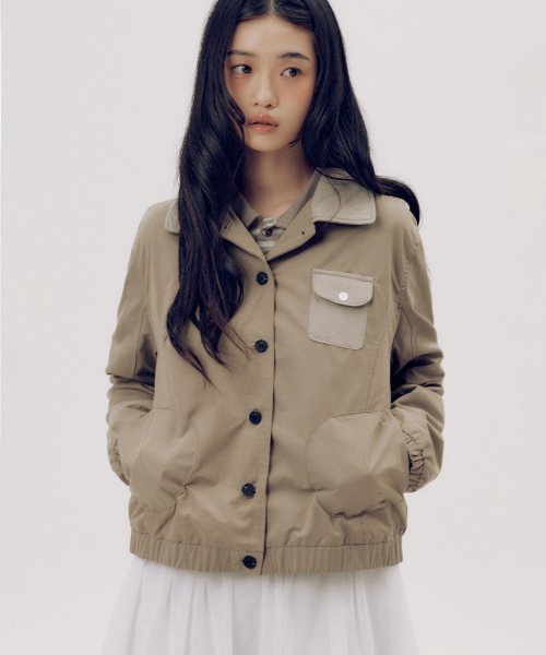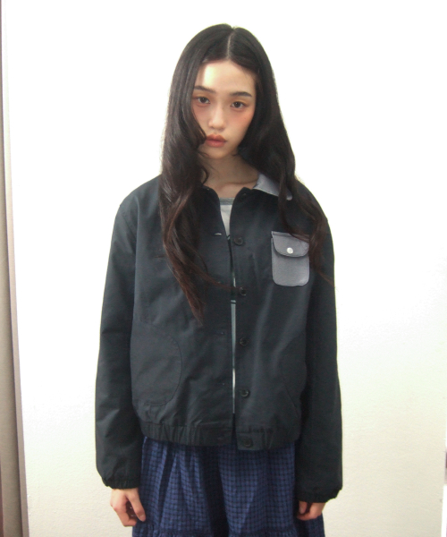 에센셜 버튼업 싱글 카라 코튼 워크 블루종 자켓 _2COLOR