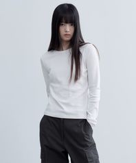 우먼즈 슬림 크루 넥 긴소매 티셔츠 [화이트]