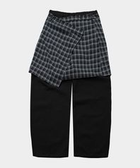 체크 랩 스커트 레이어드 베이직 코튼 와이드 팬츠 세트 [블랙]