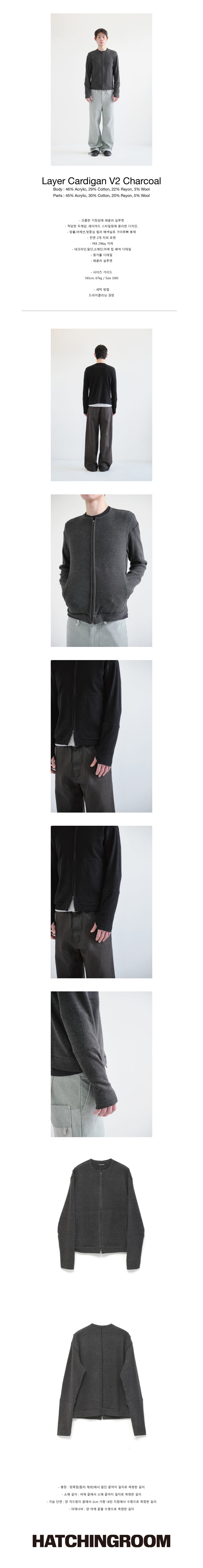 해칭룸(HATCHINGROOM)은 새로운 것이 탄생하는 장소를 의미하며, 기존의 의복을 재해석합니다. 급진적인 변화를 주진 않으나 착용자를 생각한 편안한 디테일과 유려한 실루엣을 보여줍니다. '눈에 담긴 일상'에서 영감을 받아 이를 기록하고 담아냅니다.