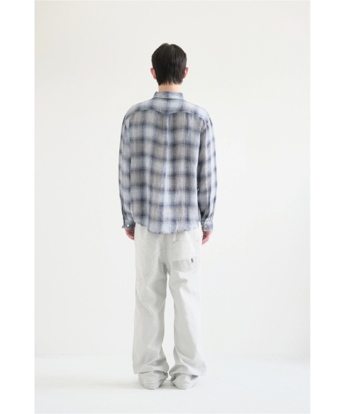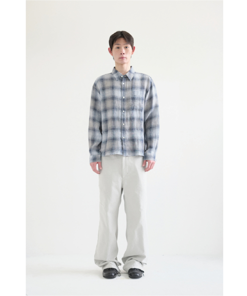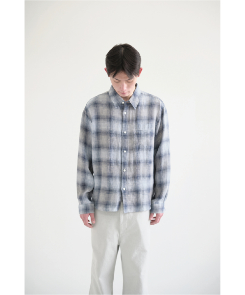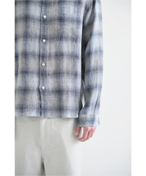 Museum Shirt Linen Check Blue/Grey