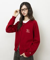 미니멀 라운드넥 투웨이 니트 집업_레드